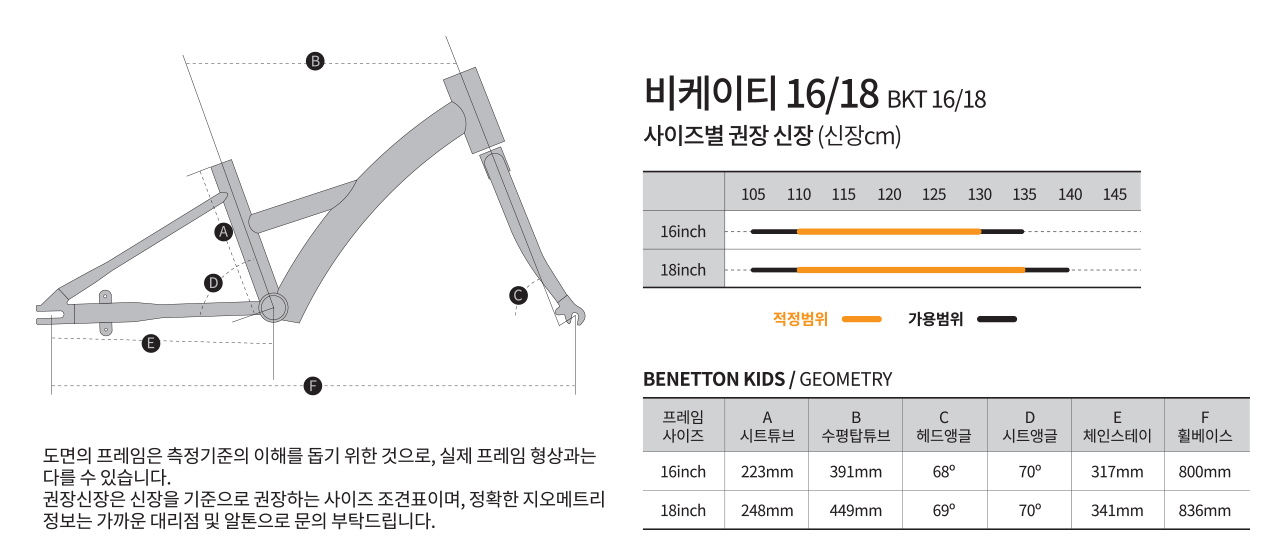 | 타이어/튜브 | 타누스 토로키 16 x 1.5 / 18 x 1.5 (노펑크 타이어) |